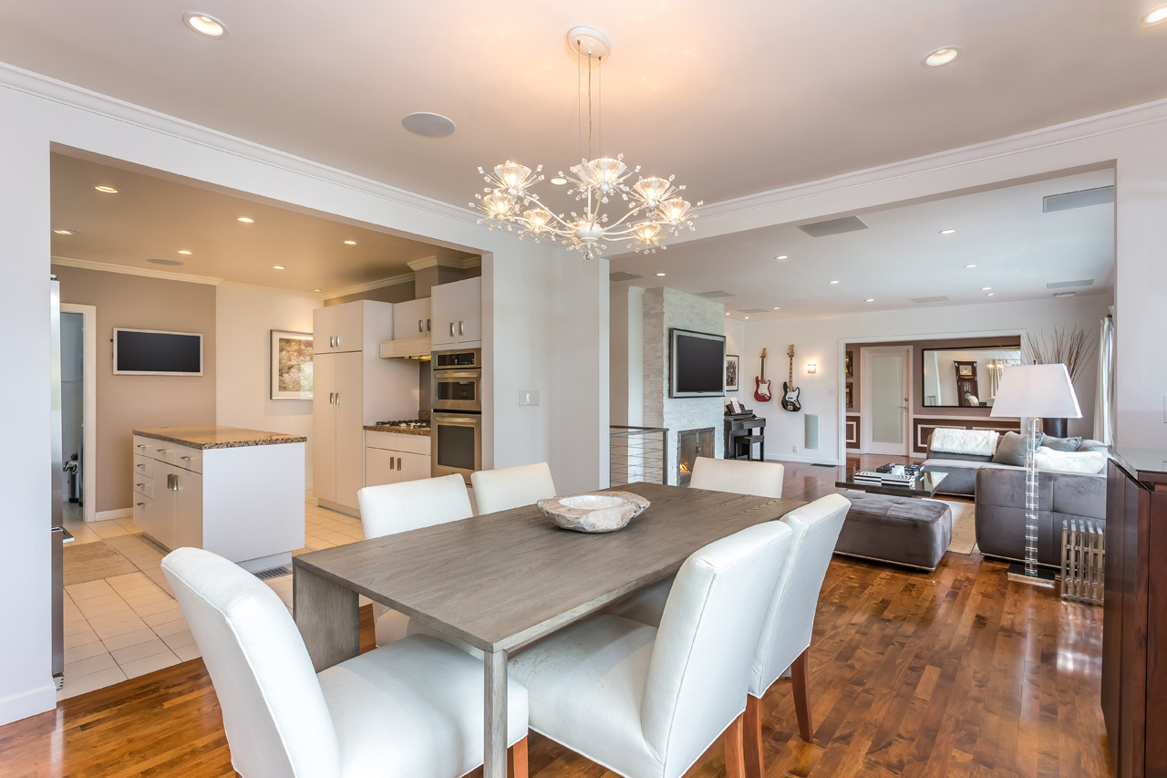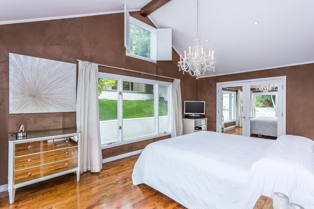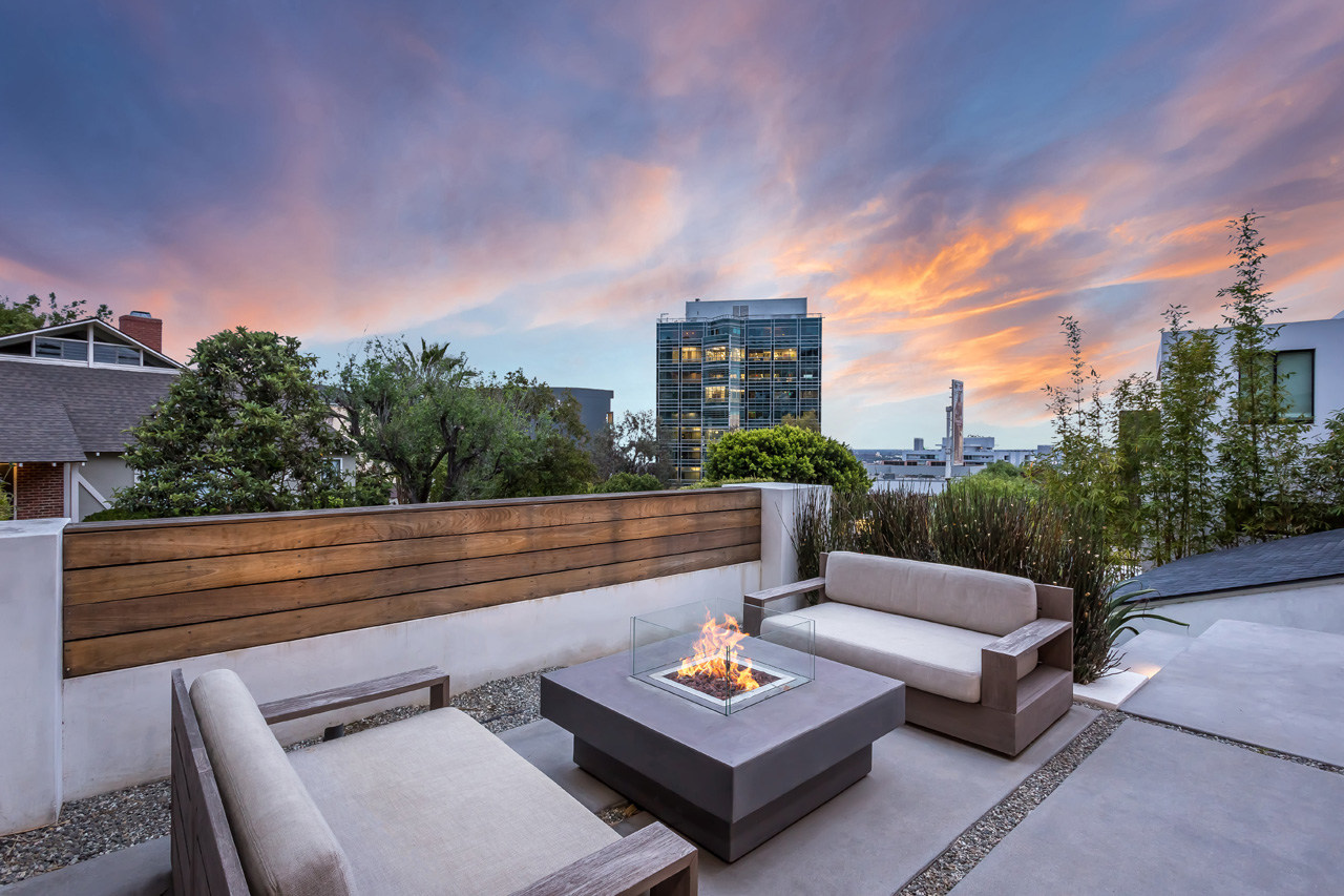Located a stone’s throw away from the heart of the Sunset Strip, this contemporary single-story home is an entertainer’s dream with a massive yard and city views. The spacious open floor plan has phenomenal indoor/outdoor flow to the beautiful backyard replete with zero edge pool, lounging cabana, $150k indoor/outdoor QSC AV Nightclub Sound System, multiple exterior fireplaces, full outdoor kitchen with Sub-Zero/Wolf appliances, and mature tropical landscaping. The oversized owner’s suite features high vaulted ceilings and ensuite bath fit with steam shower and jacuzzi tub. Control 4 smart home, automated pool system, full surround sound theatre in living room, and B & W speakers in every room make this house perfect for the music lover.