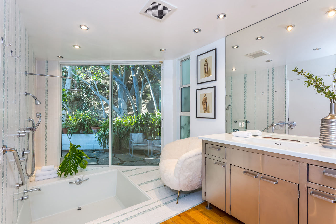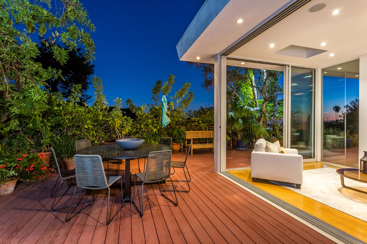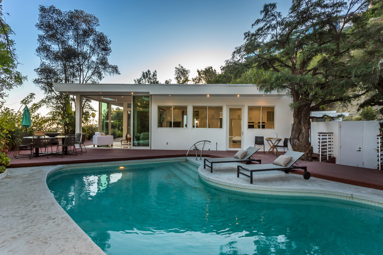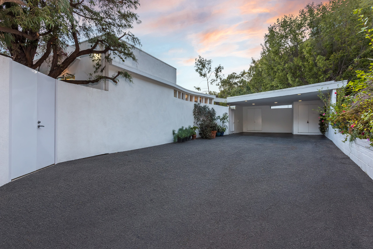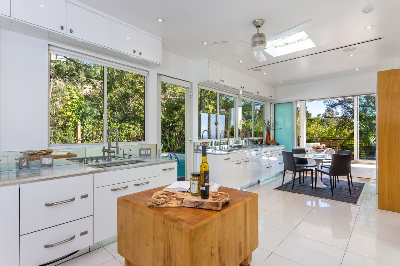 On the market for the first time in more than 30 years, this private midcentury estate is situated on over an acre of land with impressive city views, all set behind a long private driveway at the end of a quiet cul-de-sac. With more than 3,000 sq. ft., 4 beds and 5 baths, this house can be enjoyed just as it is, although the land is worth at least as much as the house as developers could construct a new 12,000+ sq. ft. residence (via Underbuilt). Featuring floor to ceiling windows and a plethora of skylights, this home allows an abundance of natural light. Ideal for entertaining with a wrap-around deck providing the perfect indoor/outdoor access from the spacious kitchen to the beautiful pool.