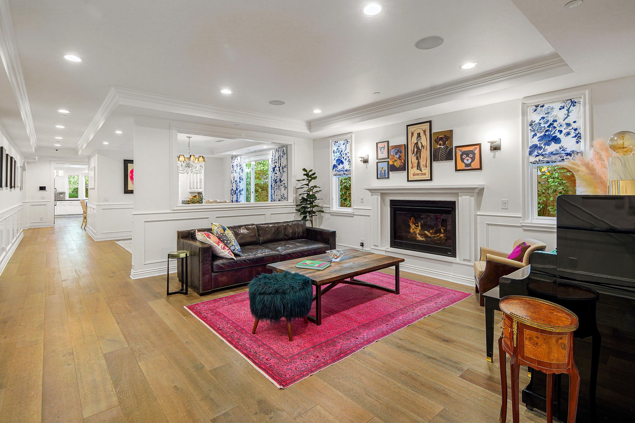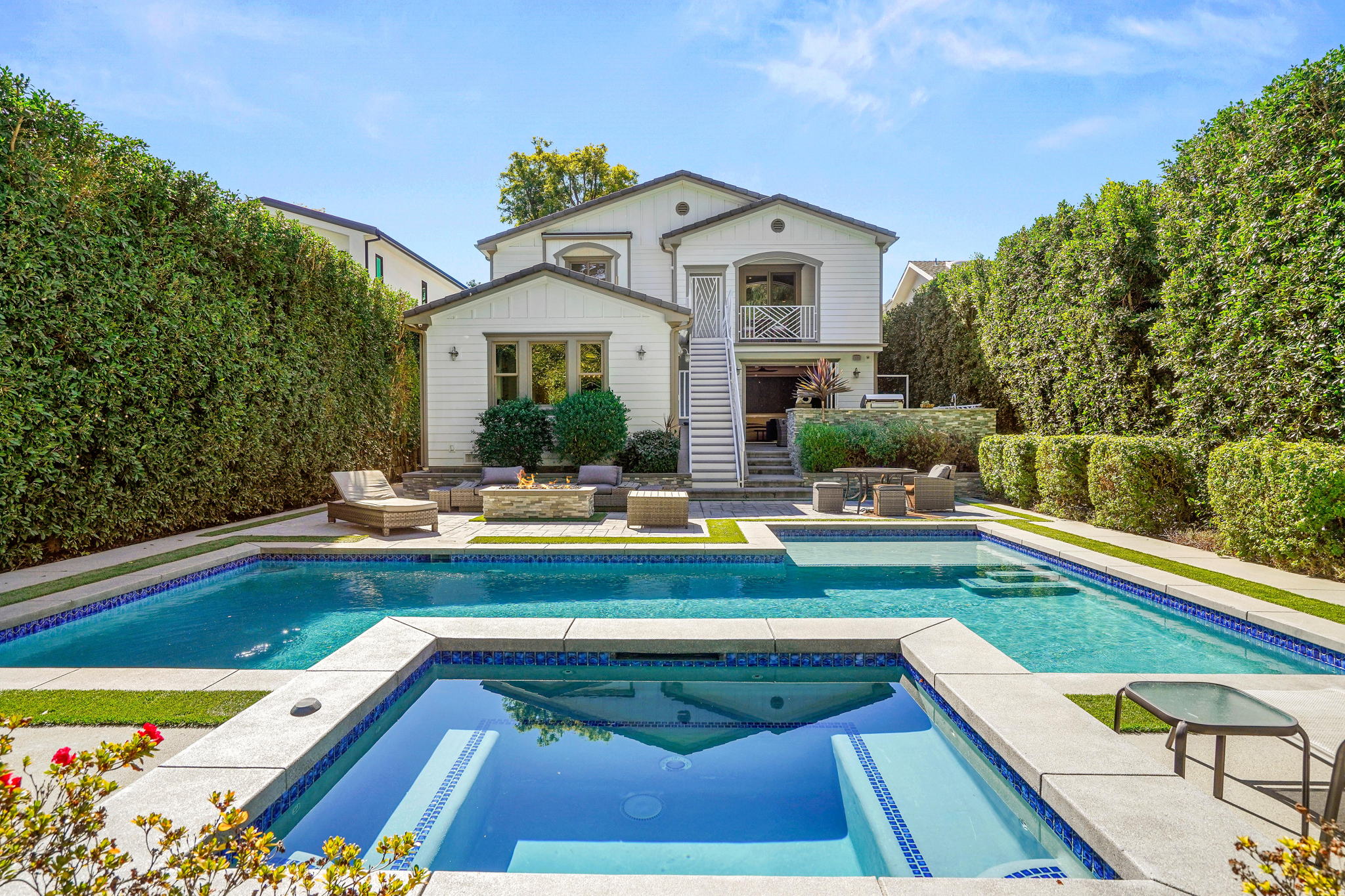 Nestled in prime Sherman Oaks just south of Ventura Blvd., this Cape Cod estate sits tucked away behind private gates and a lush front yard. Enter through the grand foyer boasting double-height ceilings, into the beautiful home replete with stunning white oak floors and custom built-in finishes and fixtures throughout. Large windows allow for abundant natural light to stream into the living room with a fireplace. There is ample space to cook and eat in the chefs kitchen with a center island and breakfast nook, which includes modern stainless steel appliances. The primary suite boasts a fireplace and expansive en-suite bathroom with a separate soaking tub and walk-in shower, as well as a double vanity. Enjoy the pool and spa in the private backyard with cabana, fire pit, and dining area perfect for relaxing or entertaining. New solar system, converted gym, automated smart home Crestron system, and gated driveway parking with 2-car garage complete this impressive offering.