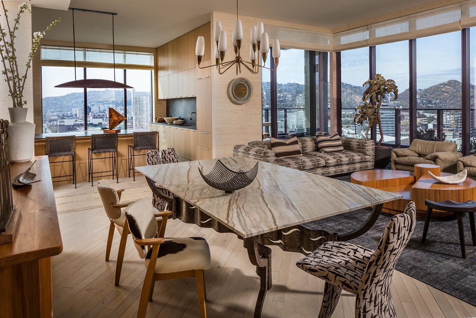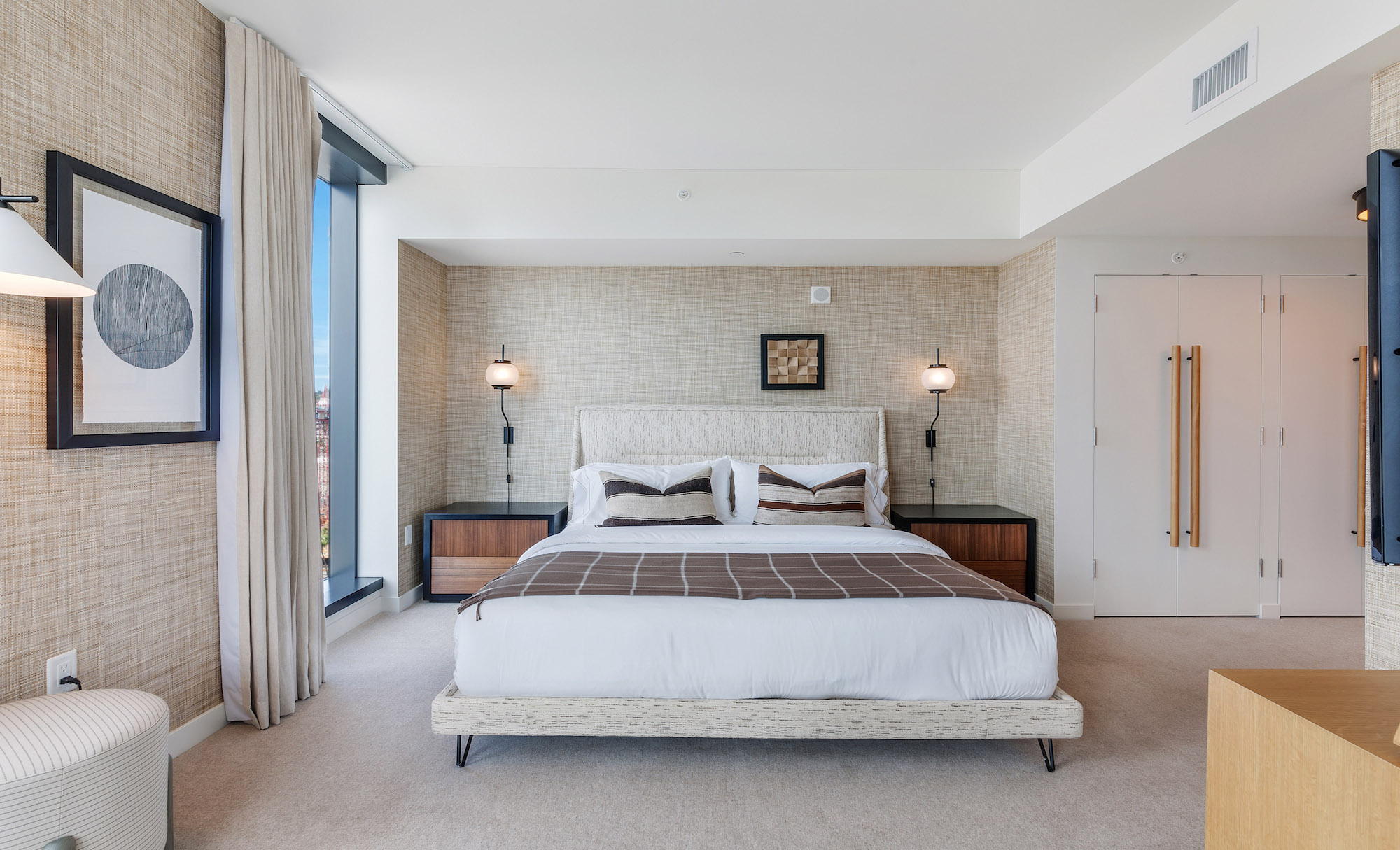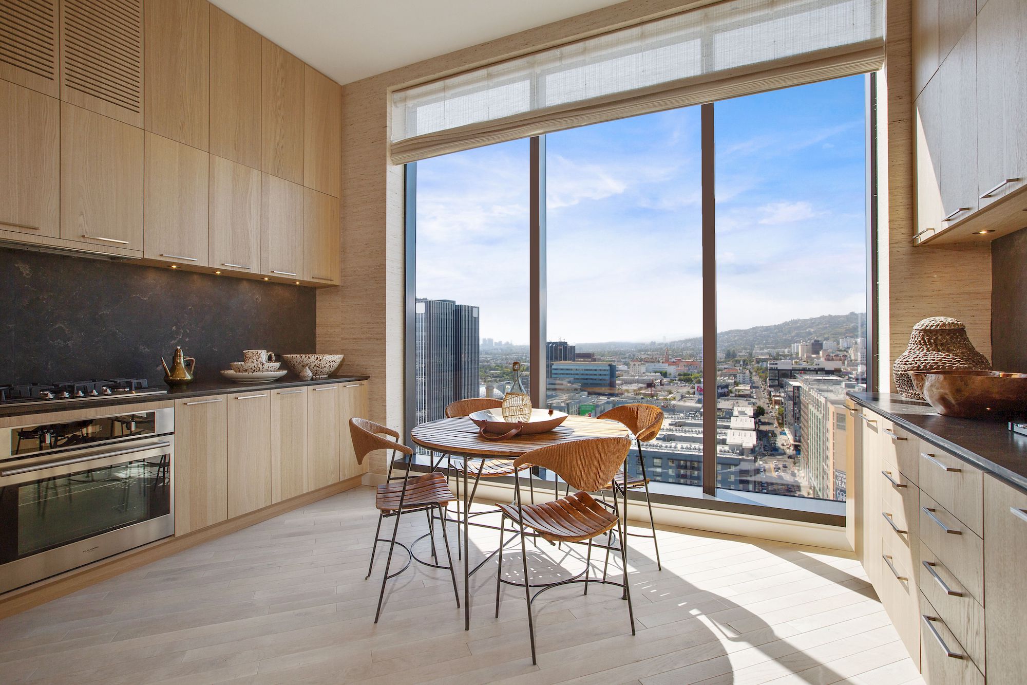Hollywood Proper is a modern luxury residence located in the center of Hollywood at Columbia Square. The residences feature energy efficient soundproof floor to ceiling windows, custom oak cabinets with leather finishes, limestone kitchen and bathroom countertops and can be furnished upon request. The building features a stunning rooftop with 360 degree views, a swimming pool with private cabanas, indoor and outdoor dining and an elegant lounge that overlooks the Hollywood sign. There is a state of the art 1600 square foot gym as well as wellness classes on the Yoga terrace and resident certified personal trainers for hire. There is 24 hour/5-star white glove service. It is designed by the famous Kelly Wearstler, celebrity interior designer and brought to you by the founders of Viceroy hotels. All units come with a Proper Tablet which handles all service accommodations including room service, valet, concierge, etc.