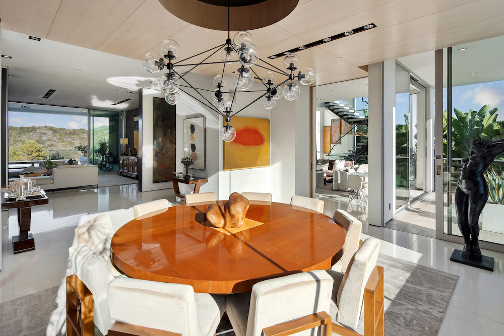 Privately perched on the prestigious Bel Air Road behind a gated driveway, this one-of-a-kind estate delivers world-class design, total seclusion, and jetliner canyon and city views. This breathtaking architectural triumph redefines luxury living, with every inch designed to impress. Floor-to-ceiling windows flood the open-concept interiors with natural light, while automated retractable glass walls erase the line between indoor and outdoor living. The expansive entertainer's paradise features an infinity pool, spa, outdoor kitchen, and bar, all set against a lush, sprawling grassy yard. Inside, every space is curated for both elegance and comfort with grand scale. A striking living room with a statement fireplace, a chef's kitchen with an oversized island and custom wood cabinetry, and a spa-inspired primary suite deliver a perfect balance of warmth and sophistication. A state-of-the-art home theater with an en-suite bar, a private studio, a 300-bottle glass wine cellar, and a fully equipped gym round out the next-level amenities. Surrounded by lush landscaping and mature trees, this estate offers unmatched privacy while being just minutes from world-class shopping, dining, and entertainment. A true architectural masterpiece, this residence is more than a homeit is a statement of prestige, offering an unrivaled retreat in the heart of one of Los Angeles' most coveted enclaves.
