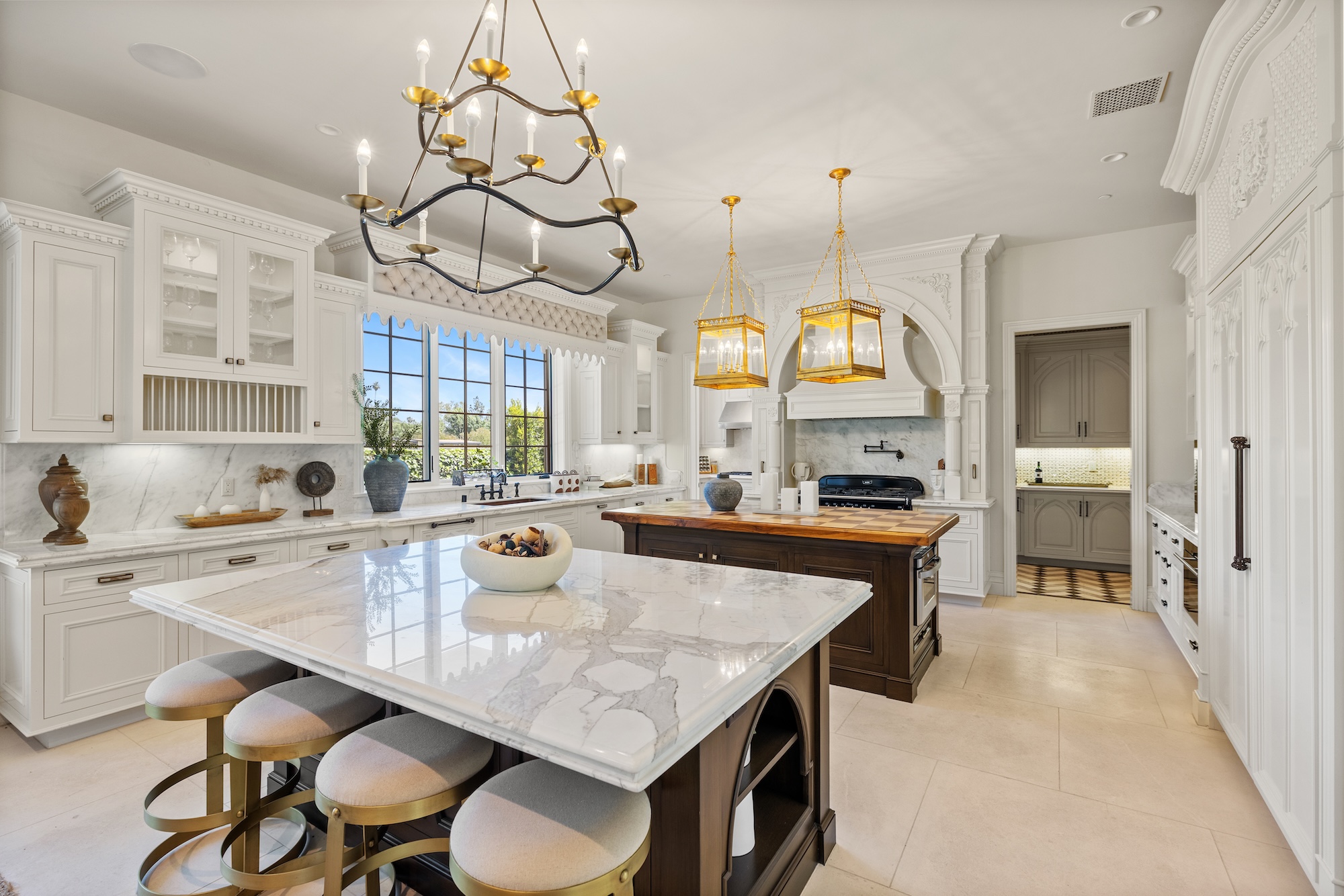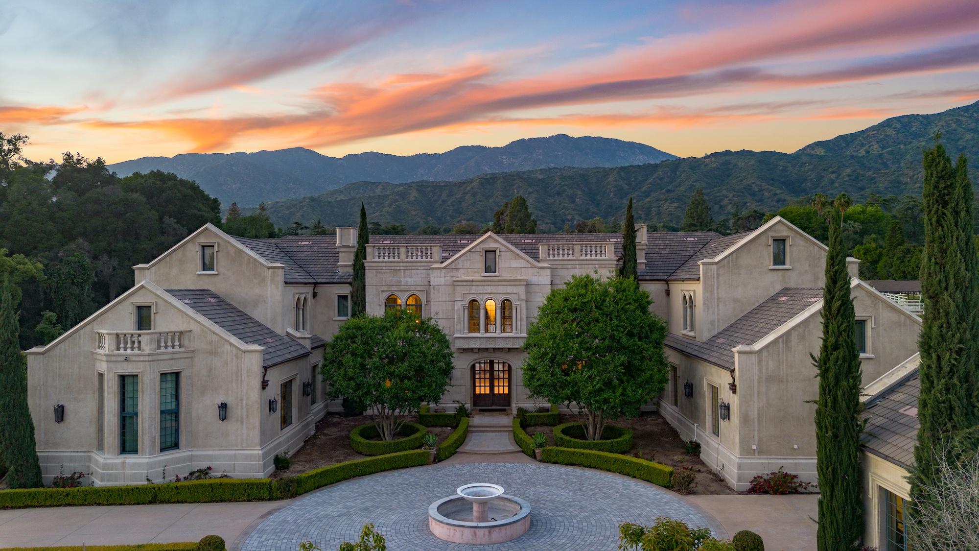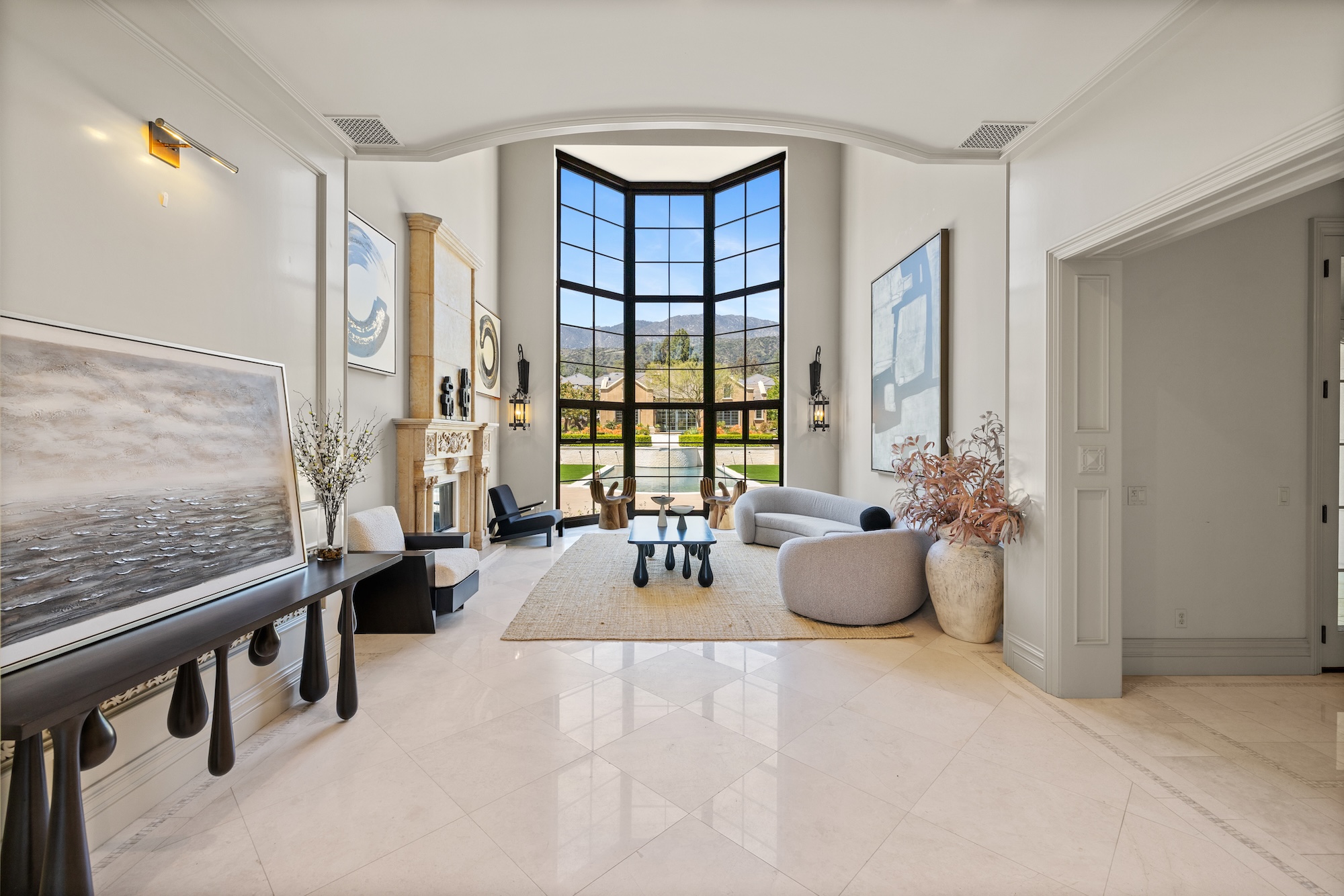 Set behind private wrought-iron gates in the prestigious guard-gated enclave of Bradbury Estates, 18 Dovetail Lane is a masterfully designed English Tudor mansion that blends timeless architecture with modern luxury across an expansive 2.52-acre lot. With 10 bedrooms and 13 bathrooms, including a private 3-bed, 4-bath guest house, this estate is the ultimate in refined living. The main residence offers 7 bedrooms and 9 bathrooms, showcasing soaring cathedral ceilings, gothic arches, fleur-de-lis detailing, and intricate woodwork. A soft neutral palette accented by antiqued metallics and natural finishes evokes both warmth and grandeur. Custom highlights include a gilded coffered library, gourmet kitchen with artisan cabinetry, secondary wok kitchen, private home theater, and dedicated spa room for ultimate relaxation. Resort-style grounds are equally impressive, featuring a full-size basketball court, life-sized chess garden, sparkling pool and spa, and elegant formal landscaping designed for entertaining and peaceful retreat. With its blend of European elegance and California luxury, this stately residence is a rare offering in one of Southern California’s most exclusive communities.