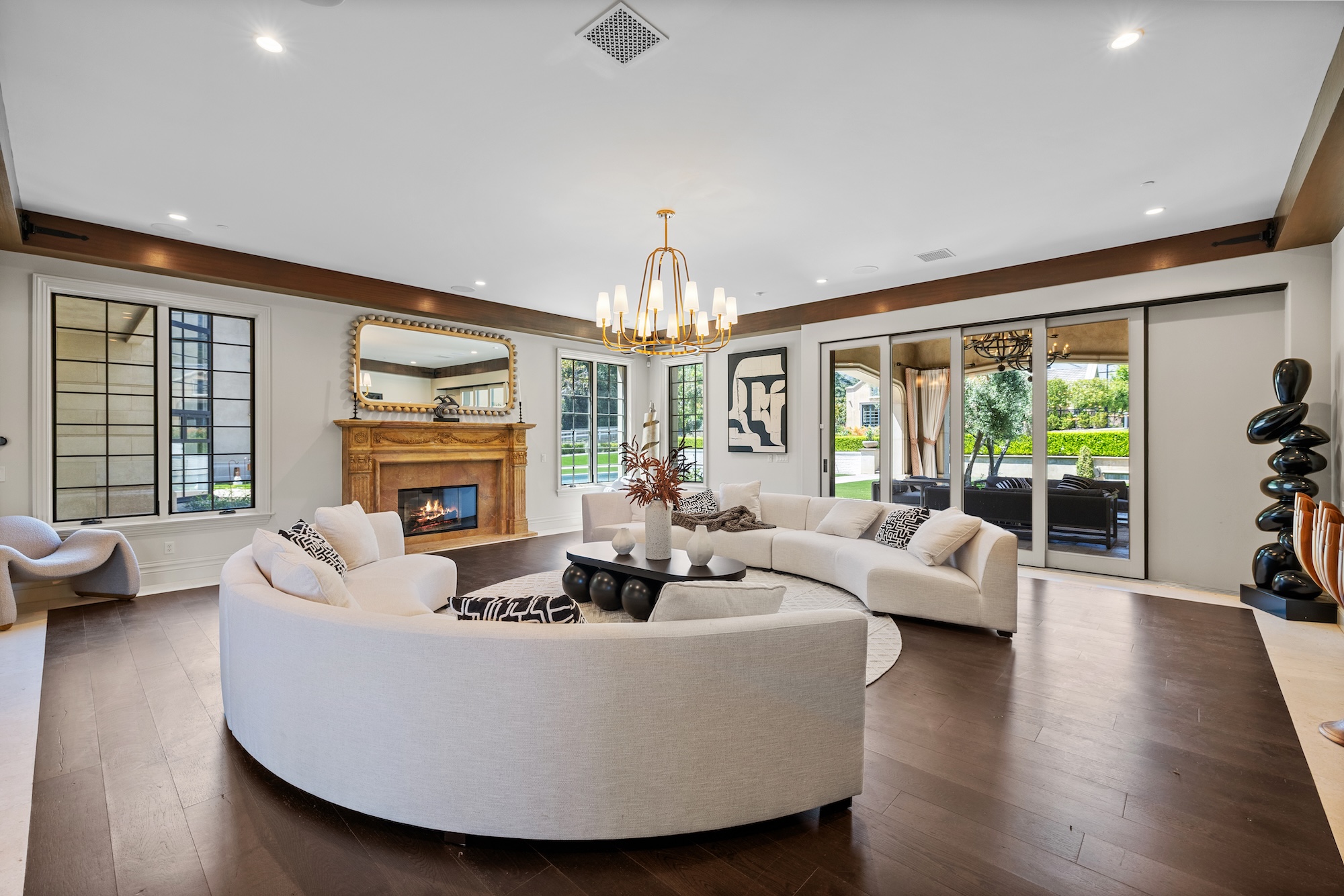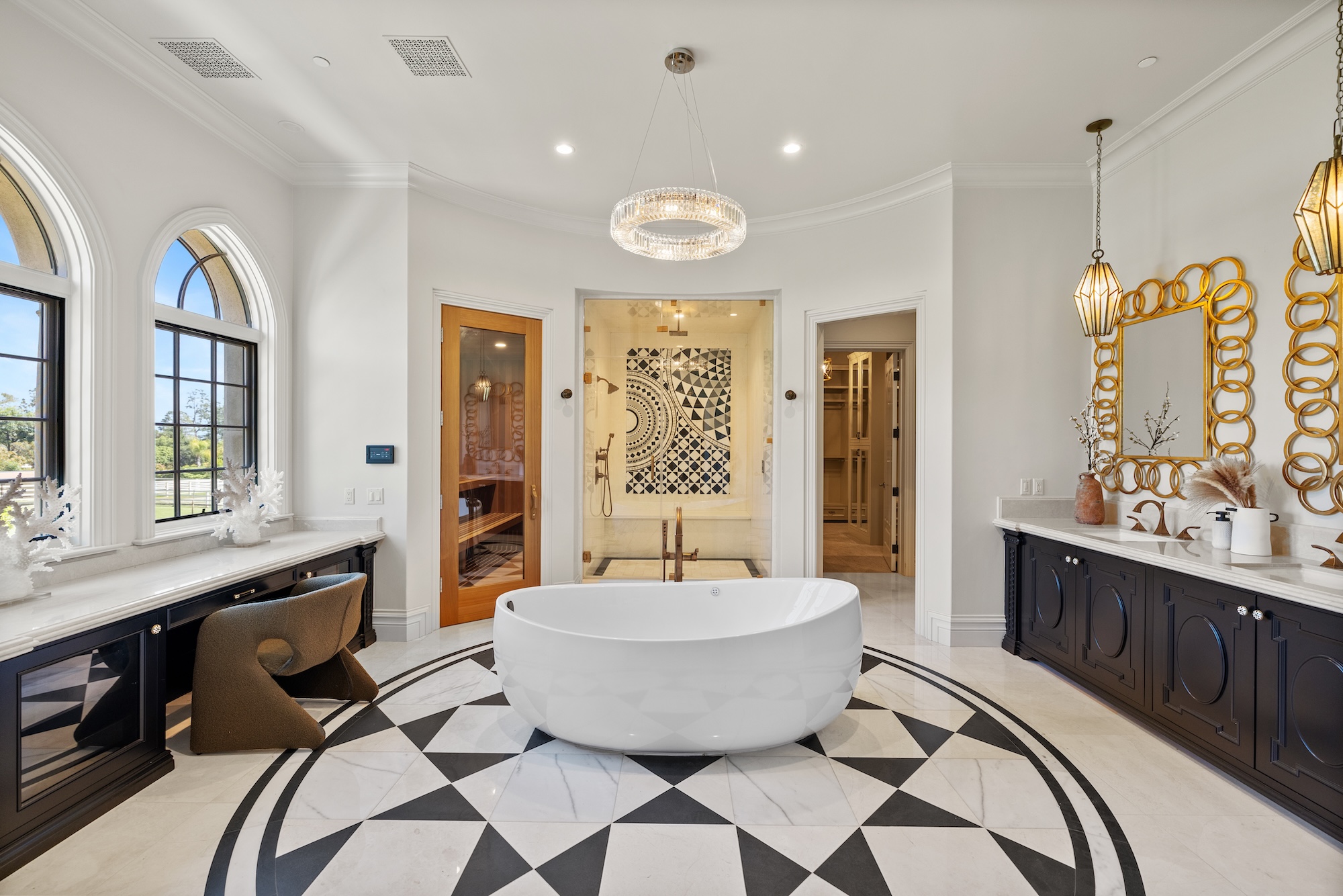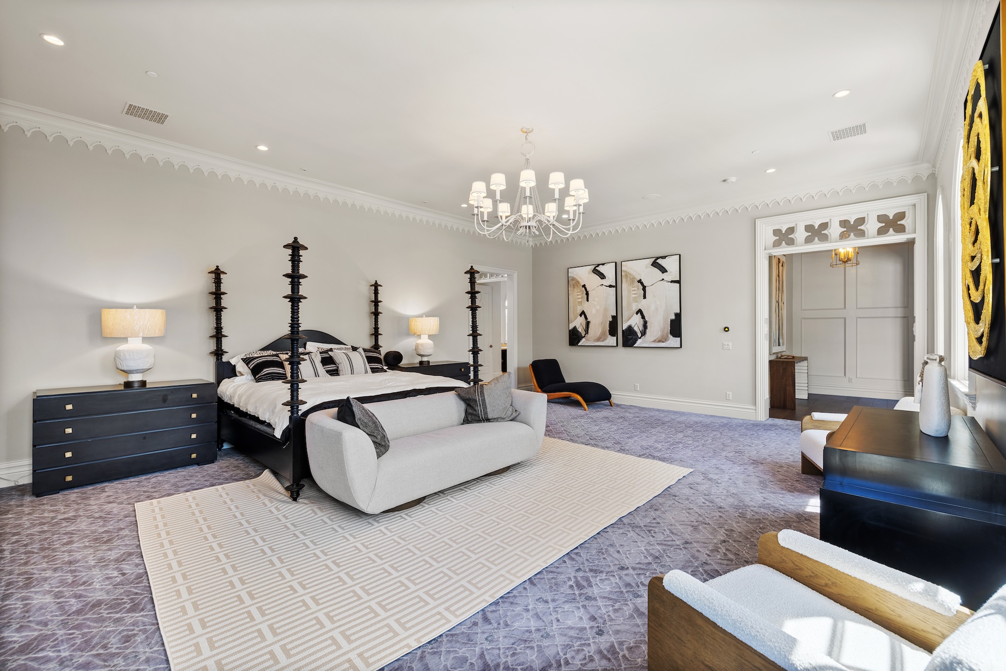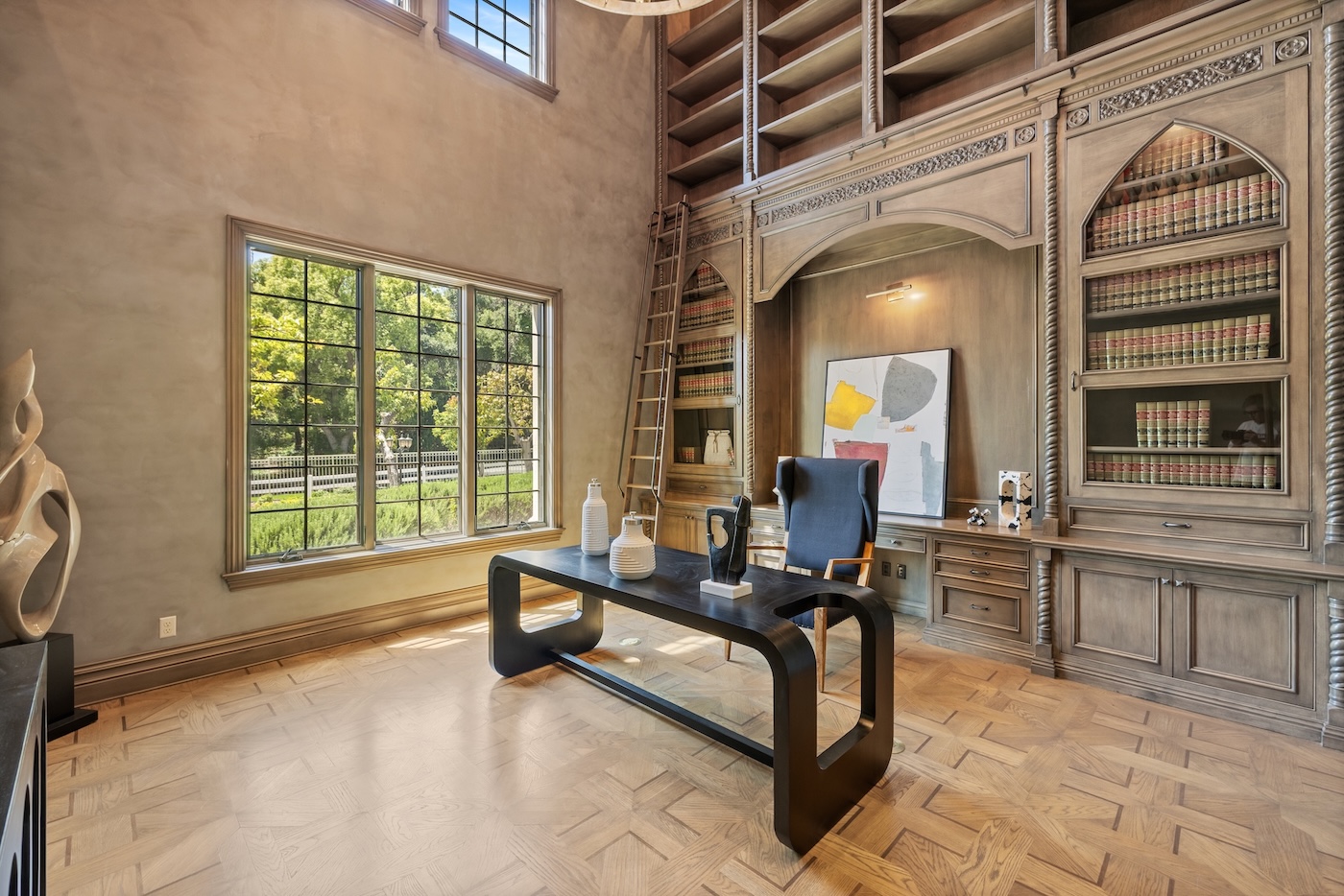 Set behind private wrought-iron gates in the prestigious guard-gated enclave of Bradbury Estates, 18 Dovetail Lane is a masterfully designed English Tudor mansion that blends timeless architecture with modern luxury across an expansive 2.52-acre lot. With 10 bedrooms and 13 bathrooms, including a private 3-bed, 4-bath guest house, this estate is the ultimate in refined living. The main residence offers 7 bedrooms and 9 bathrooms, showcasing soaring cathedral ceilings, gothic arches, fleur-de-lis detailing, and intricate woodwork. A soft neutral palette accented by antiqued metallics and natural finishes evokes both warmth and grandeur. Custom highlights include a gilded coffered library, gourmet kitchen with artisan cabinetry, secondary wok kitchen, private home theater, and dedicated spa room for ultimate relaxation. Resort-style grounds are equally impressive, featuring a full-size basketball court, life-sized chess garden, sparkling pool and spa, and elegant formal landscaping designed for entertaining and peaceful retreat. With its blend of European elegance and California luxury, this stately residence is a rare offering in one of Southern California’s most exclusive communities.