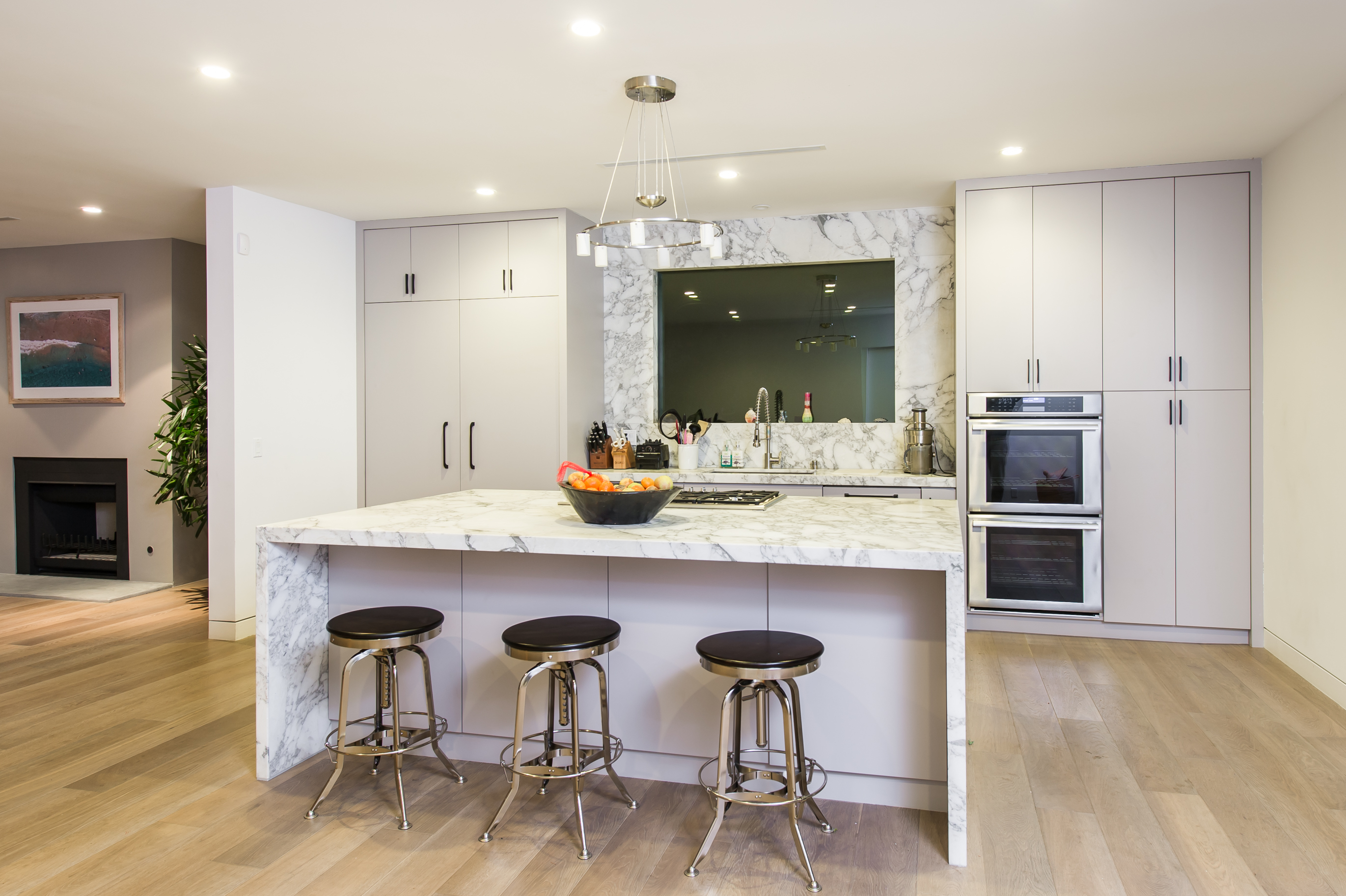 Nestled behind private gates and a long driveway, this expansive contemporary estate boasts quality finishes, meticulous craftsmanship, and stunning city and ocean views. Refined and sophisticated, the open floor plan enjoys high ceilings, bountiful natural light, and a designer chef’s kitchen replete with steel appliances and a tremendous center island. The sweeping backyard is landscaped to perfection with plentiful grass and a sizeable pool and spa.