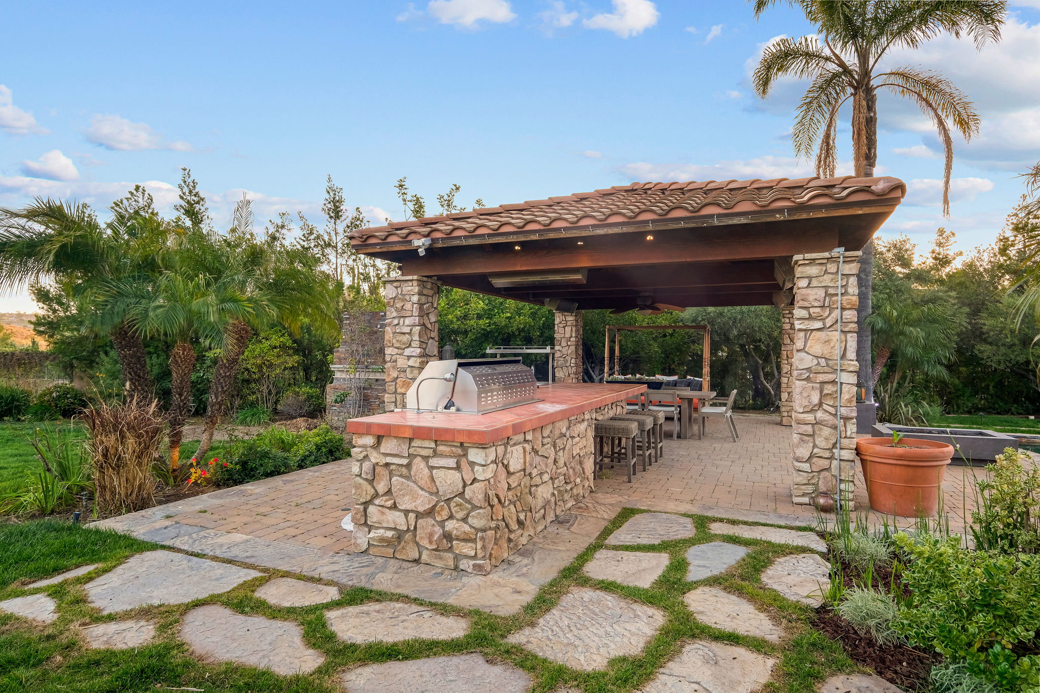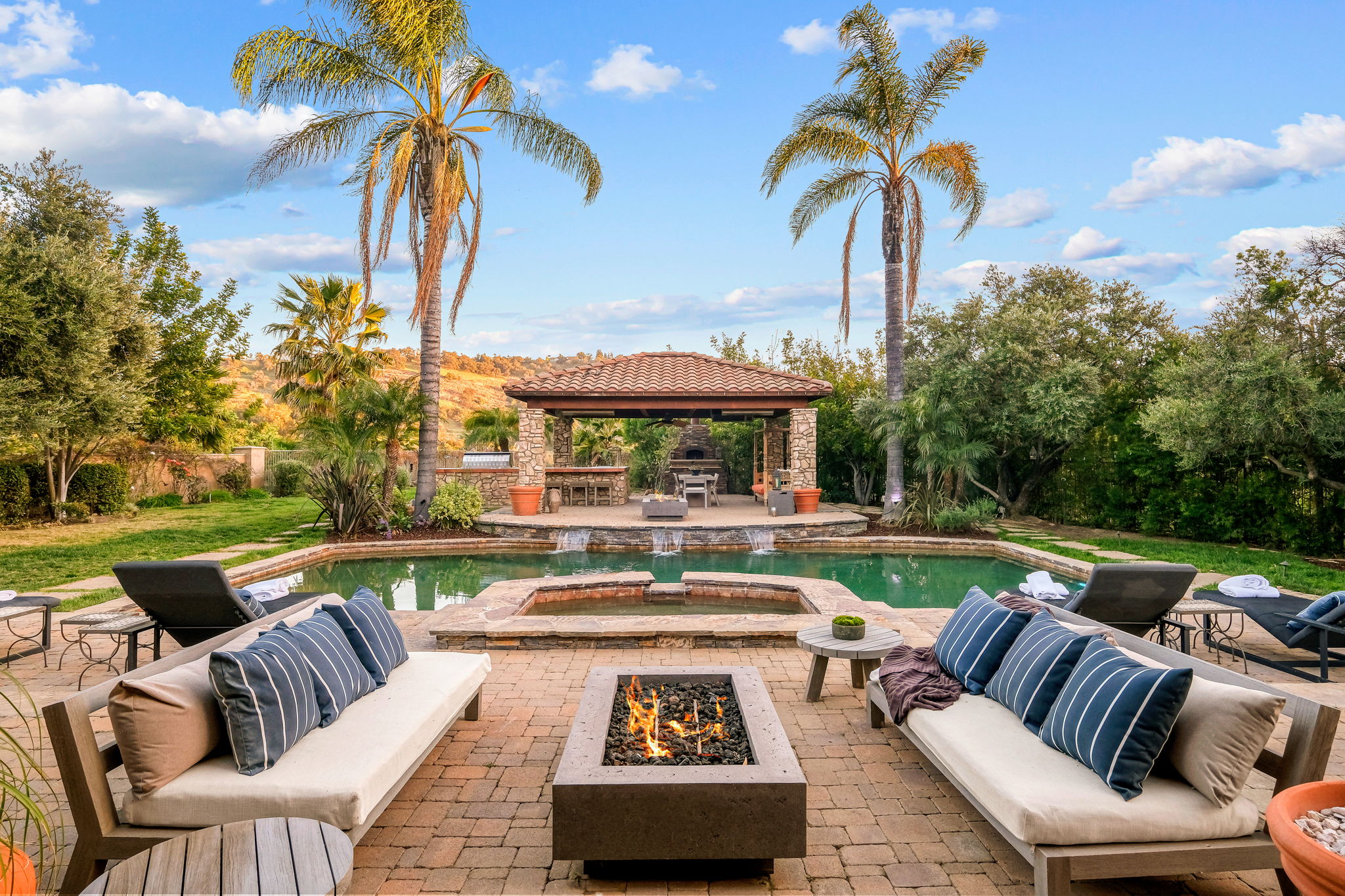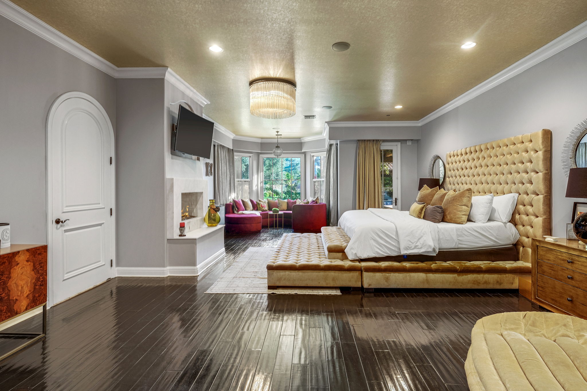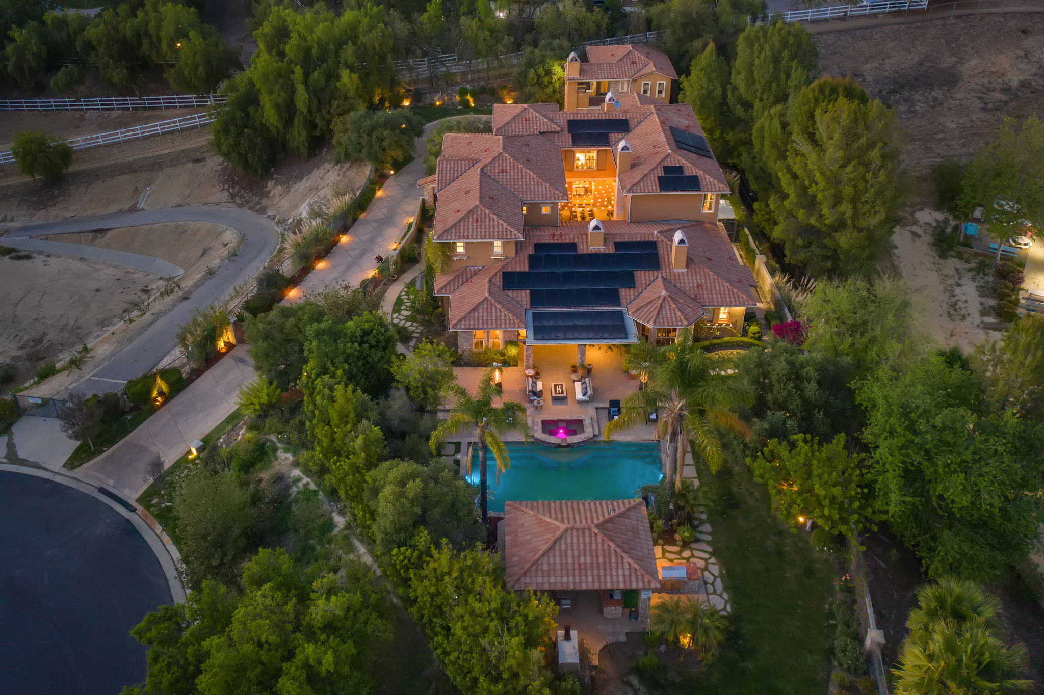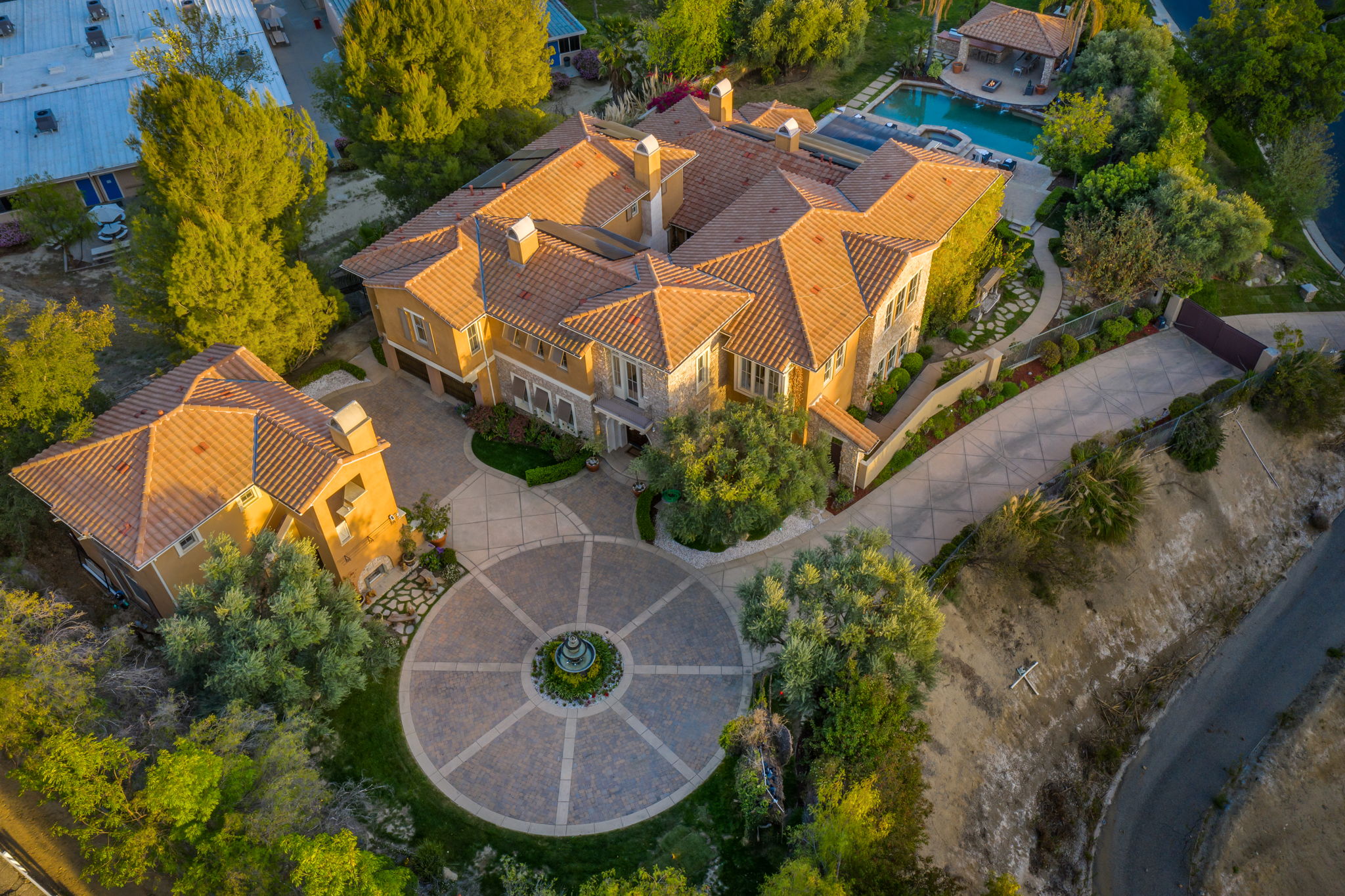 Located in the private and highly exclusive Mureau Estates gated community of Calabasas, this sprawling 3-acre celebrity-owned compound sits past a private gated driveway and large motor court. The main house offers massive scale with floor-to-ceiling windows, and a beautiful outdoor courtyard perfect for entertaining. 5 bedrooms, 5 baths, 5 fireplaces, stone tile floors, wine cellar, theatre, built-in bar, and impressive formal dining room. The kitchen is equipped w/Sub Zero fridge/freezer, Wolf Range/Oven, dual dishwashers, chef's island, breakfast nook area, and large pantry. The large owner's suite features a sitting area, spa-like bath, steam shower, and spacious closet. Exit into a resort-style backyard with pool/spa, cabana, Viking outdoor kitchen, and brick pizza oven. The detached guest house offers a spacious living room, full bath, walk-in closet, and terrace w/fireplace. A full recording studio has been fitted with the best equipment the industry has to offer. Home systems include built-in surround sound, Sonos, Control 4, security cameras, 4-zone heating/cooling, and solar panels.