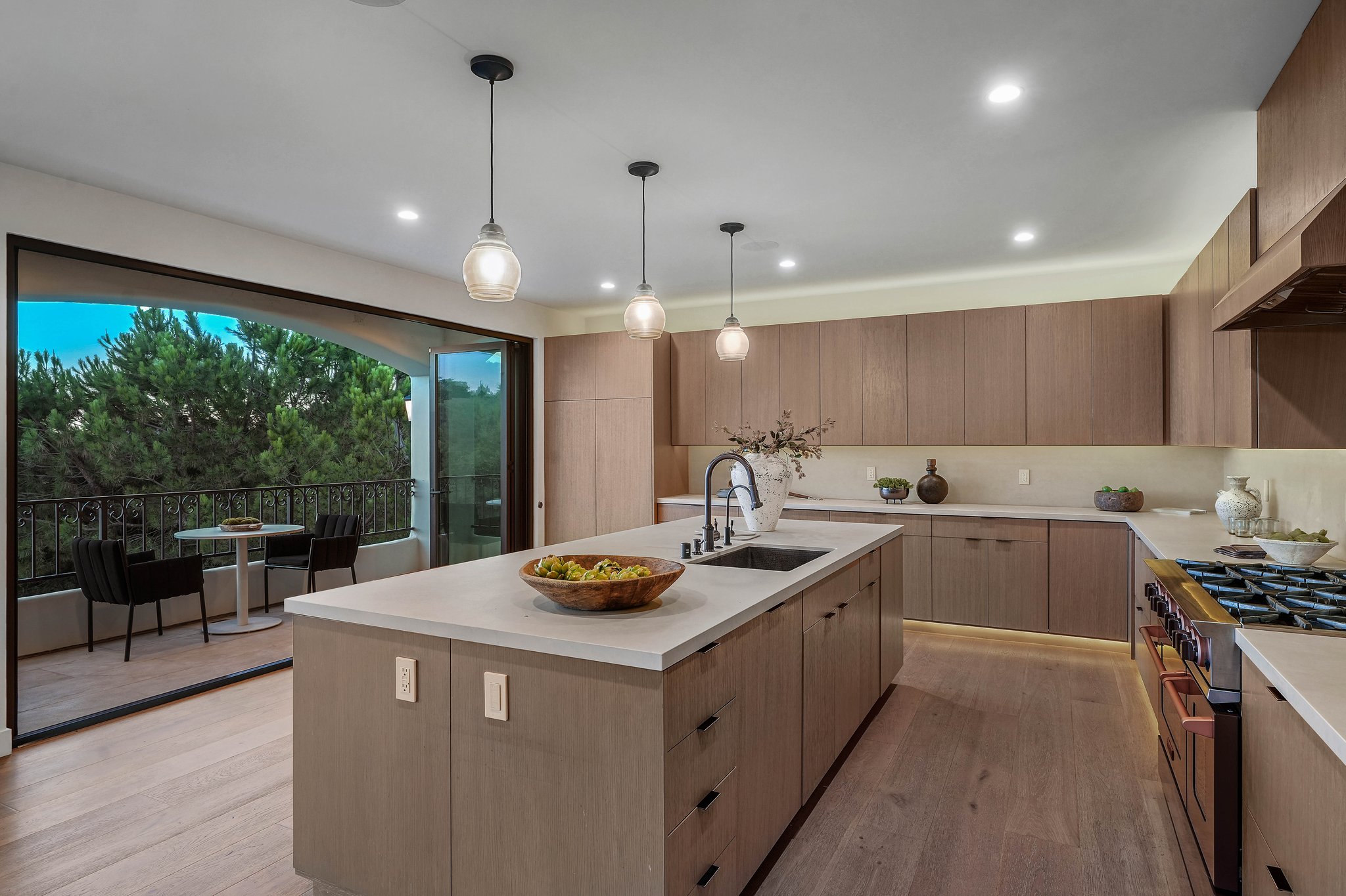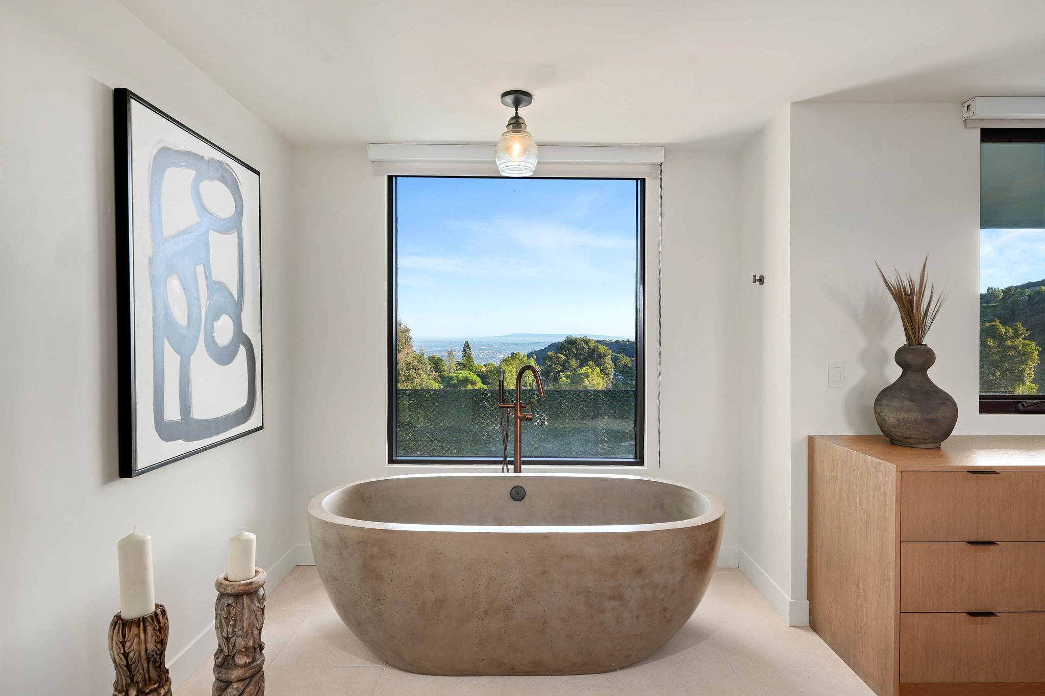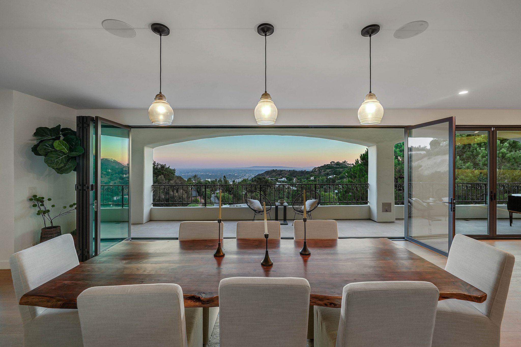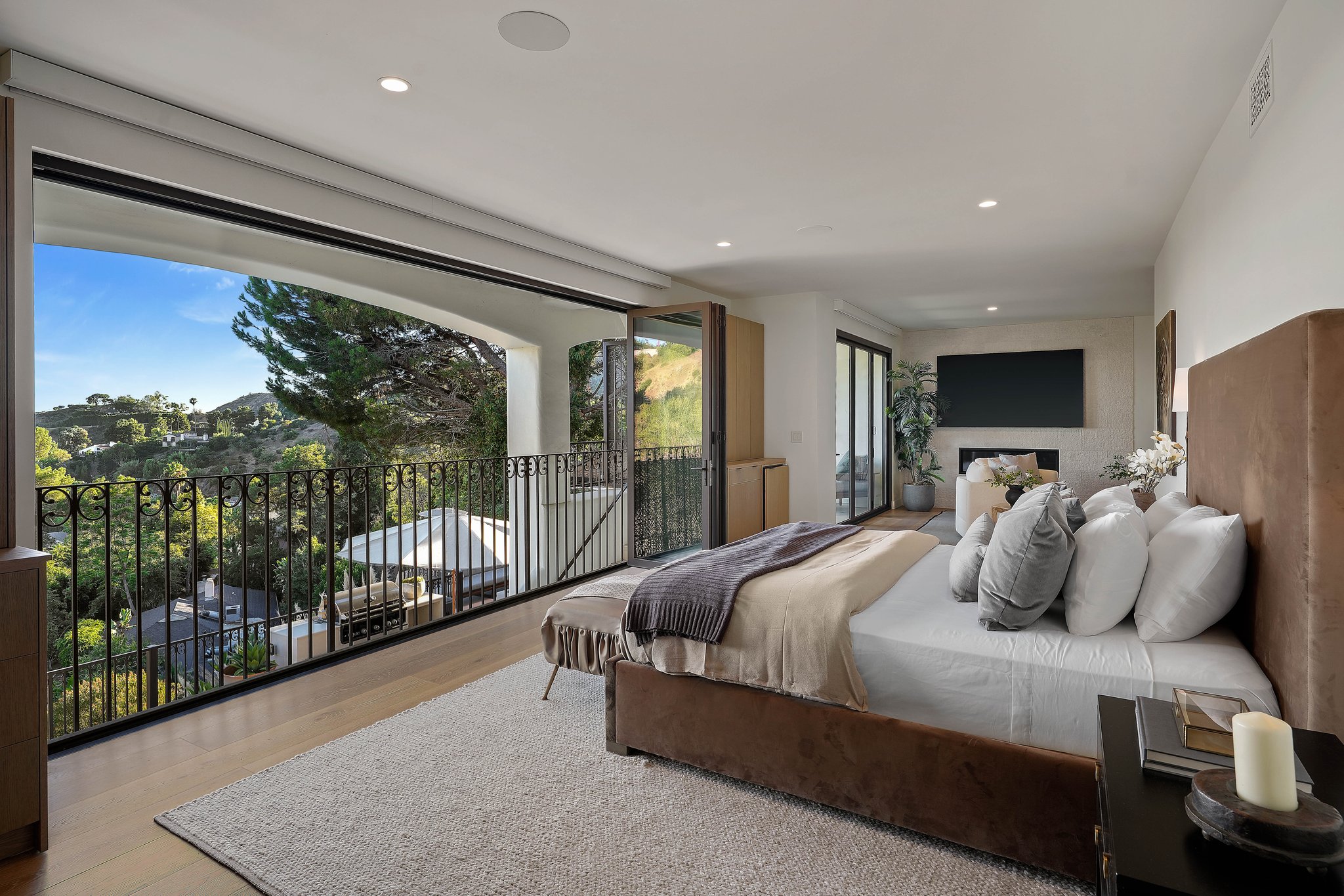 Perched in the Hollywood Hills behind private gates, discover unparalleled luxury in this beautifully renovated Contemporary Mediterranean estate offering breathtaking jetliner views of the Los Angeles skyline. This exceptional home combines elegance with a warm and organic flair, creating a serene and sophisticated retreat. Enter past the manicured lawn with gorgeous olive trees, to an expansive open floor plan where the living and dining areas effortlessly flow into a gourmet chef’s kitchen replete with bespoke neutral-toned cabinetry. A towering wall of sliding glass doors reveals the spectacular city and canyon views, leading to a sprawling balcony perfect for al fresco dining and relaxation. The nearly 2,000 sq. ft. primary suite includes a wet bar, balcony, cozy fireplace with private living area, and a luxurious ensuite bathroom that is complemented by a vast walk-in closet. Descend via the private elevator to a realm of opulent amenities, including a state-of-the-art home theater, an indoor/outdoor entertainment level, and a wellness center complete with a massage area, sauna, and gym. The backyard is an entertainer’s dream, featuring an elegantly lit outdoor space with a bar, fire-pit, BBQ area, and a stunning pool and spa. The gated parking area can accommodate up to 4 vehicles, in addition to a substantial 3-car attached garage. Modern conveniences include advanced smart home automation and surveillance systems, ensuring both comfort and security. Conveniently located near Runyon Canyon and just a short drive from Hollywood and Studio City.
